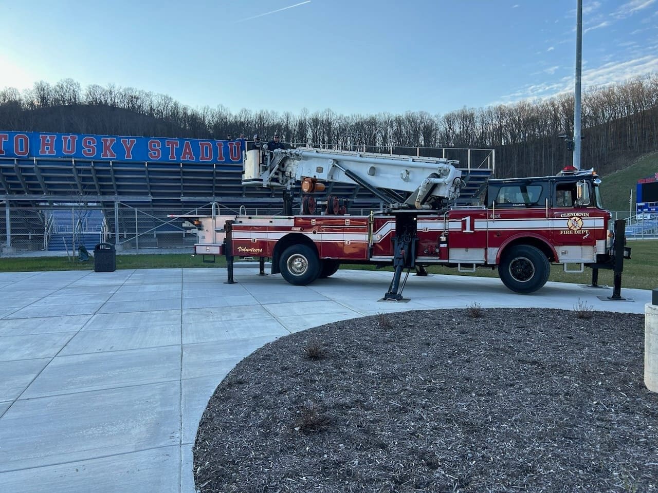 We used Tower Ladder 1 to hang the wind screen on the bleachers at Husky Stadium.